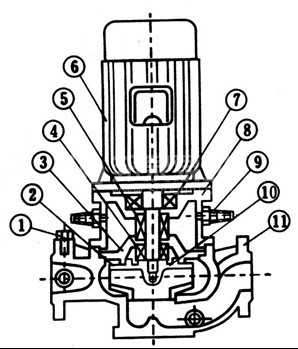 4、泵為立式結(jié)構(gòu),進(jìn)出口口徑相同,且位于同一中心線上,可像閥門一樣安裝于管路之中,外形緊湊美觀,占地面積小,建筑投入低,如加上防護(hù)罩則可置于戶外使用。
